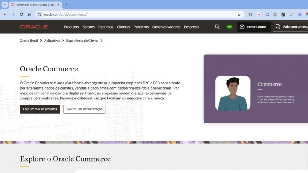 A Oracle é um gigante da tecnologia e oferece uma solução de e-commerce B2B altamente integrada, com foco em gestão de dados e automação. Sua plataforma utiliza tecnologias avançadas de nuvem e inteligência de negócios para oferecer uma experiência fluida, tanto para vendedores quanto para compradores.